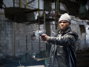 No straight-to-DVD crime movie is complete without the grizzled middle-aged actors portraying the cops on the gangster’s tail (now look at the cast list again, put two and two together and don’t say I didn’t warn ya). Here they’re portrayed by reliable genre mainstays James Remar and Paul Calderon. They allow 50 Cent the priceless opportunity to have other characters wax poetic about his badassedness while also acting as the social and moral conscience of the film. The two cops spend a lot of movie just sitting around talking about the increase of crime in the inner city and the recession and other talk radio platitudes. Besides its pretensions of being a classic crime thriller, Gun also posits itself as socially-conscious drama. 50 Cent attempts to have his cake and eat it too, making his character the coolest, most stone-cold badass he can muster while simultaneously having the staid, washed-up good guys explain that what he does is wrong in excruciatingly literal ways. Even 50 eventually gets in on it, stating that ‘‘It’s hard out there, yo. It’s like the Reagan era. People are hungry. People starving, man. You gotta do what you gotta do.’’