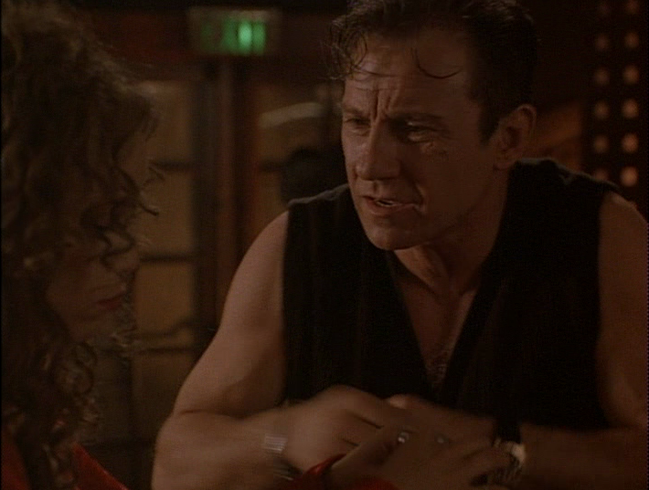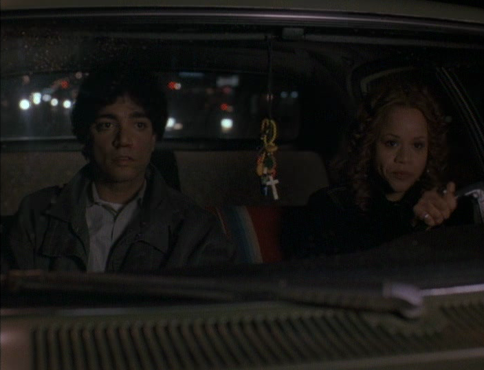 At the club one night, Mercedes catches the eye of shy, awkward young Ernesto (Michael DeLorenzo), a recent immigrant who lives with a ton of others in a dilapidated old house and spends his nights at the club. He soon becomes enamoured with Mercedes and begins an awkward, shuffling courtship despite the fact that she already has a man. He protects her from crotch-grabbing would-be rapists outside the club one night and she takes him home to nurse his injuries, leading him to get a full chest-plate tattoo of her name. Ernesto is a man possessed by the cinematic manifestation of l’amour fou which means that, to us normal people, he seems completely batshit crazy. Mercedes, however, seems to think he’s worth having around.