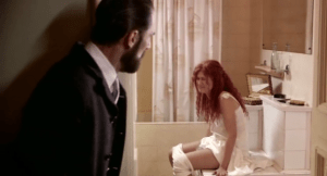 Breuer and Nietzsche begin a series of sessions in which the doctor attempts to cure Nietzsche’s sadness without ever letting him on that he’s doing such a thing. Breuer consults his good friend, Sigmund ‘Siggy’ Freud (played, hilariously, by Jamie Elman of Canadian sitcom Student Bodies) but makes no real advancement with his patient. Both men have their own internal struggles: Nietzsche with crippling migraines and Breuer with a never-ending bout of nightmares that greatly increase the bad-CGI budget. In order to get the stoic Nietzsche to speak up, Breuer tries the unthinkable: he will treat Nietzsche for his migraines and Nietzsche will become his confidant and help him get rid of the poorly-conceived nightmares where he falls down a CGI hole. It comes out that Breuer fell in love with a patient (Michal Yannai) but was forced to let her go when his wife found out and she now haunts his dreams (at one point he hallucinates watching her shit, complete with fart noises). In case you’re keeping track, there has been no weeping by Nietzsche at this point, although he has yelled and smashed his face into a mirror.