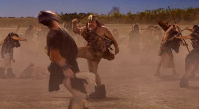 Honestly, as bad as this movie could ostensibly sound, I wouldn’t bat an eye if it was an early Woody Allen movie. While Rifkin isn’t nearly as charismatic as Allen (but certainly more charismatic than, say, Edward Burns), the idea itself has very much been proven to work in the past. Unfortunately, this ain’t no Love and Death. While Ishbo is a philosophical caveman, his philosophising is most limited to him wondering if there’s more to life while other cavemen bonk each other upside the head in the background. In fact, people getting clubbed upside the head seems to be the entire movie’s single-most important event. You see, ‘clubbing’ s basically just a euphemism for sex; everyone consequently spends the entire movie obsessing about being clubbed and getting clubbing and clubbing bitches to a point where a Smurf-like cognitive dissonance forms pretty quickly. Not only is clubbing the film’s #1 favourite joke, it’s also its favourite word.
